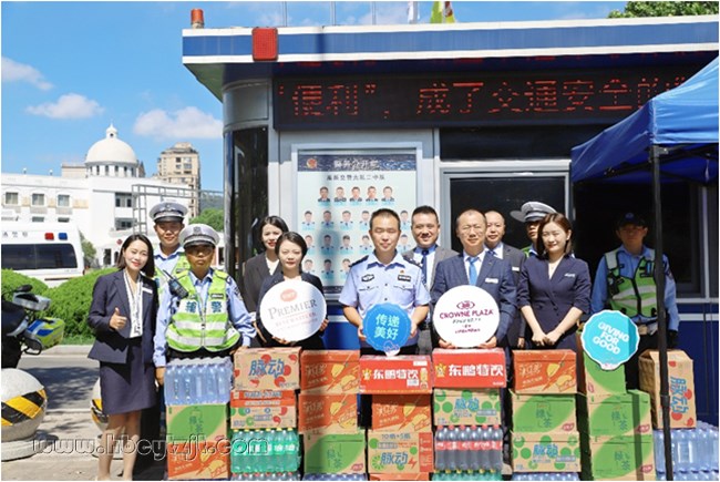合肥皇冠假日酒店總經(jīng)理戴慶豐先生表示:“交警同志們頂烈日、戰(zhàn)酷暑,守護(hù)市民出行安全,是當(dāng)之無(wú)愧的城市英雄。我們特意準(zhǔn)備這些飲品,希望能為大家及時(shí)補(bǔ)充水分、緩解暑氣,以此表達(dá)誠(chéng)摯的敬意。”